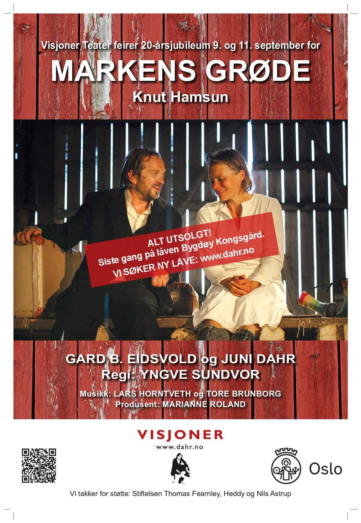 Det er 20-års jubileum for Markens Grøde med Juni Dahr og Gard B. Eidsvold på Bygdø Kongsgård med forestillinger 9. og 11. september 2025. Nå skal vår faste arena på Bygdøy bygges om til ysteri så vi SØKER NYE LÅVER. Ta kontakt på visjoner@dahr.no om du har låve!