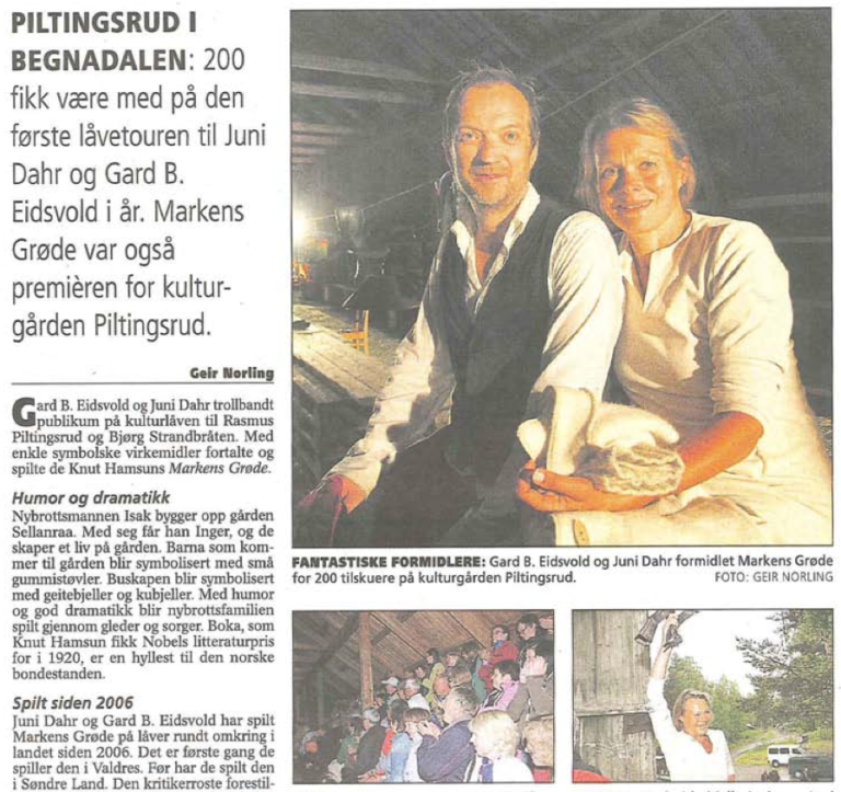 Pitingsrud i Begnadalen: 200 fikk være med på den første låvetouren til Juni Dahr og Gard B. Eidsvold i år. Markens Grøde var også premiéren for kulturgården Piltingsrud. Les hele artikkelen her (PDF) …